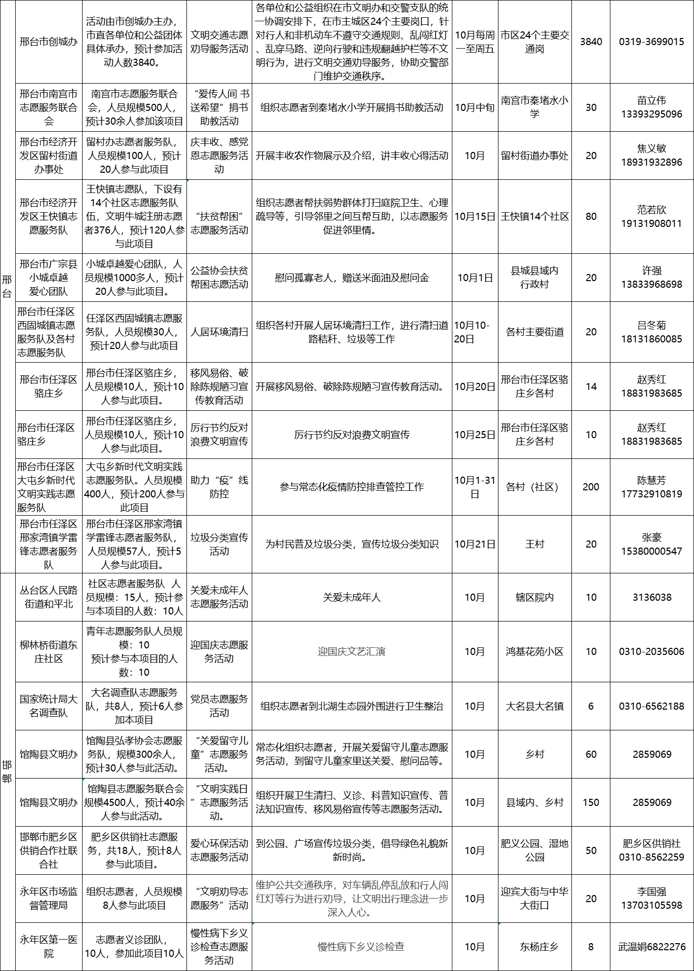 河北省發(fā)布2022年10月志愿服務(wù)項(xiàng)目