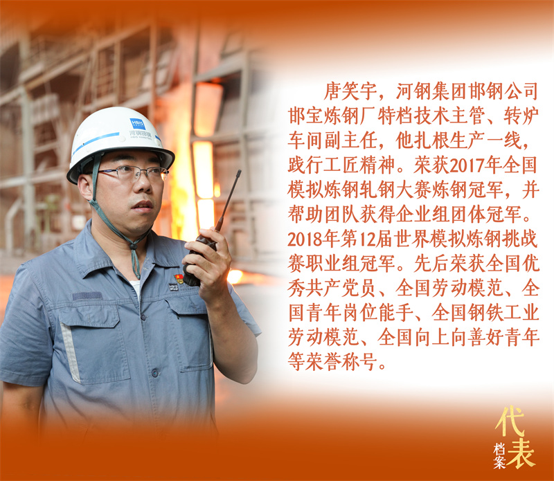 參加工作14年,唐笑宇堅持扎根一線,堅持實踐創(chuàng)新,先后榮獲全國優(yōu)秀共產(chǎn)黨員、全國勞動模范、全國青年崗位能手、全國鋼鐵工業(yè)勞動模范、全國向上向善好青年等榮譽(yù)稱號。今年,他被選為邯鄲市出席黨的二十大代表。