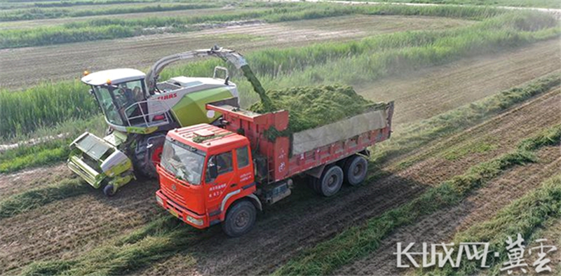 2021年7月,滄州苜蓿種植基地內(nèi)的苜蓿正在被收割。劉震 攝
