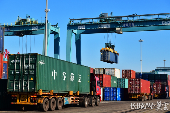 黃驊港集裝箱碼頭一派繁忙。通訊員 苑立偉 攝