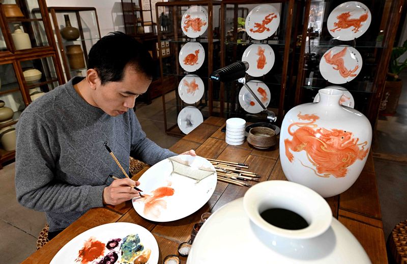 2月27日,在河北省石家莊市一家文化創(chuàng)意產(chǎn)業(yè)園,工藝師制作文創(chuàng)產(chǎn)品。新華社發(fā)(陳其保攝)