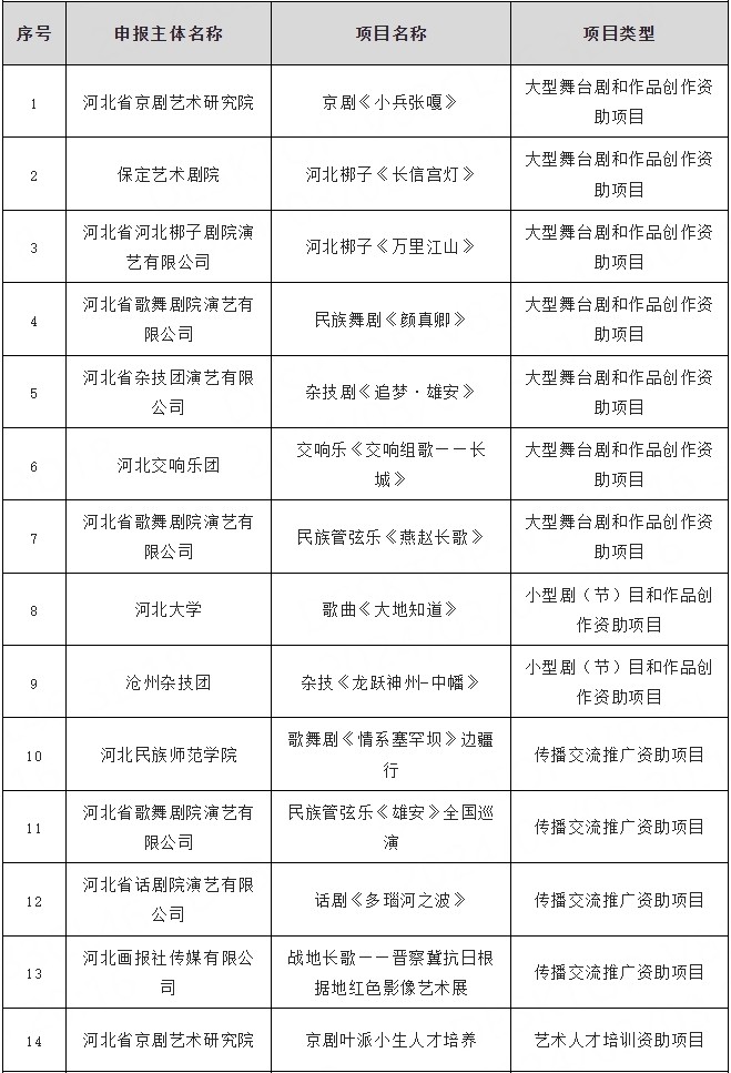河北省國家藝術(shù)基金2024年度資助項目河北省公示項目名單