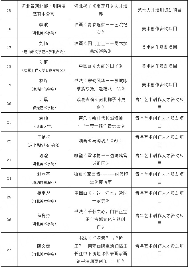 近日,國家藝術(shù)基金(一般項目)2024年度資助項目名單公示,河北省共有27項入選,較上一年度翻番。
