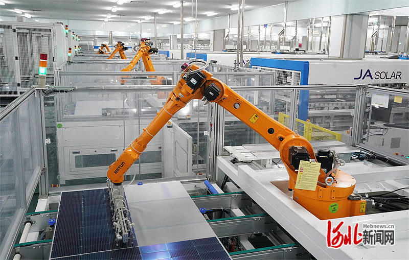 1月3日,晶澳(邢臺)太陽能有限公司智能化車間,自動排版機在光伏組件生產線作業(yè)。 河北日報記者 趙永輝攝