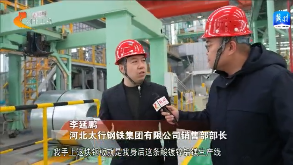我手上這塊鋼板就是我身后這條酸鍍鋅鋁鎂生產(chǎn)線,剛剛生產(chǎn)出來的產(chǎn)品,它廣泛應(yīng)用于電器柜、電纜橋架、光伏支架等多個(gè)領(lǐng)域具有更顯著的綠色屬性。