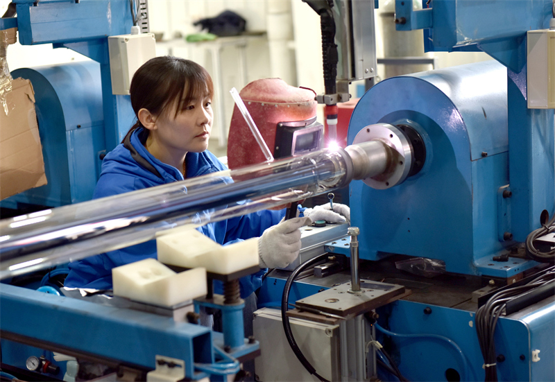 3月11日,工人在威縣一家新能源科技企業(yè)高溫集熱管生產(chǎn)線上工作。新華社記者 王曉 攝