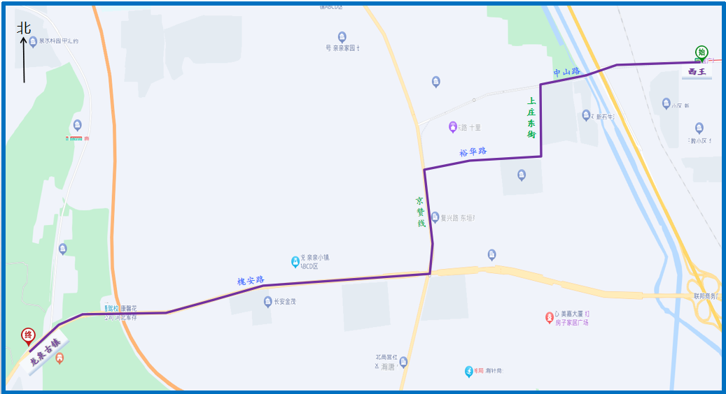 3. 站位設置:西王、華柴、上莊東街北口、新新家園、凱旋門、上莊鎮(zhèn)衛(wèi)生院、上莊槐安路口、陸院南門、省建研院、省二院鹿泉院區(qū)、龍泉古鎮(zhèn)。