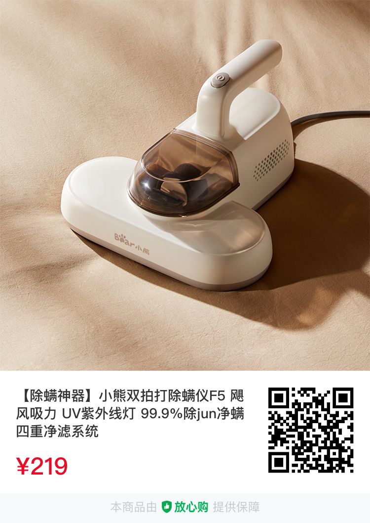 小熊F5雙拍打除螨儀,除螨率、殺菌率都高達(dá)99%,三招搞定殺菌除螨,每天都睡安穩(wěn)覺(jué)!