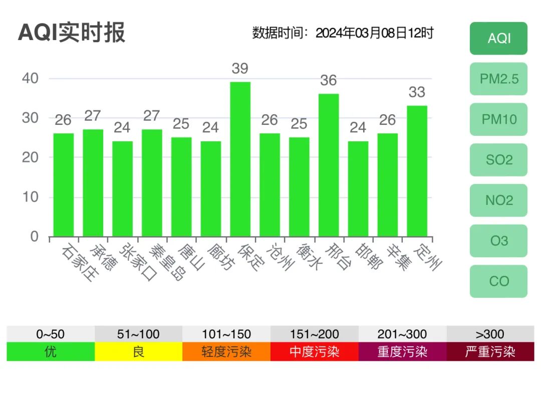 今日12時(shí)環(huán)境監(jiān)測顯示,河北各地空氣質(zhì)量均為優(yōu)的狀態(tài)。