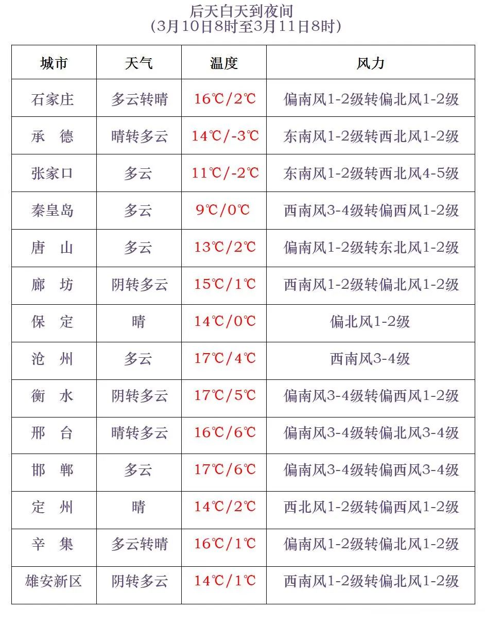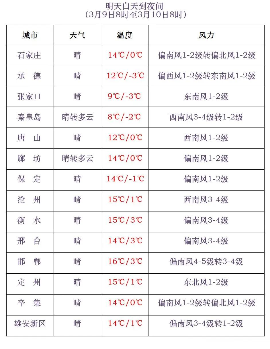 河北省氣象臺2024年3月8日11時(shí)發(fā)布天氣預(yù)報(bào):