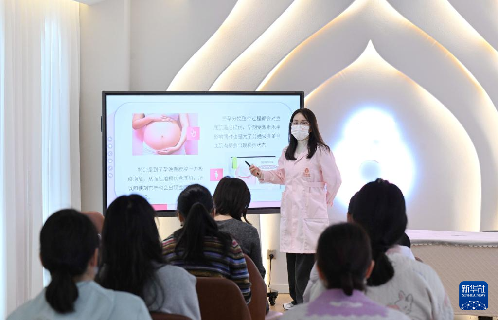 3月7日,在河北石家莊市橋西區(qū)一家月子中心,產(chǎn)婦在參加?jì)D聯(lián)組織開展的婦女健康公益講座活動(dòng)。  新華社記者 王曉 攝