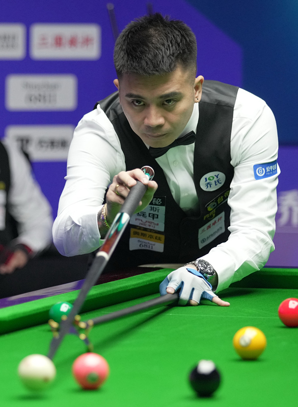 3月16日,菲律賓選手喬丹在國際組選拔賽中。最終,他6比2戰(zhàn)勝伊朗選手穆罕默德·法拉杰。新華社記者 楊世堯 攝
