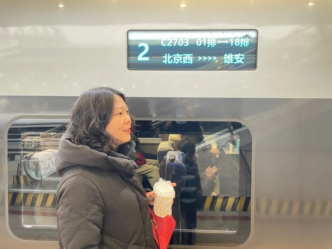 范正銳從北京出發(fā)乘坐復(fù)興號高鐵列車前往雄安