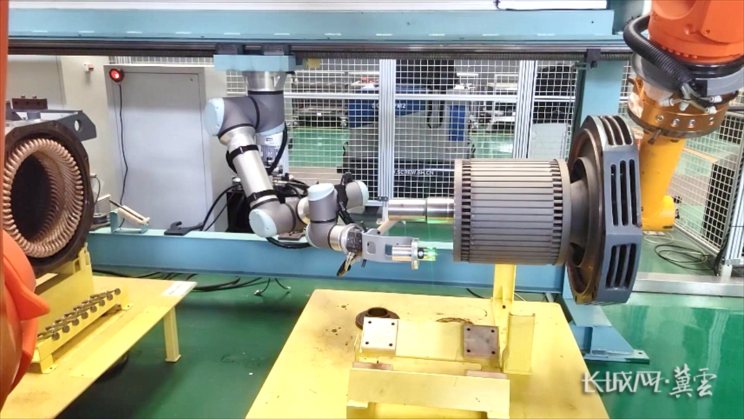 唐山百川智能機器股份有限公司技術人員在調試牽引電機智能組裝機器人。河北網(wǎng)·冀云客戶端實習記者李冠橦 攝