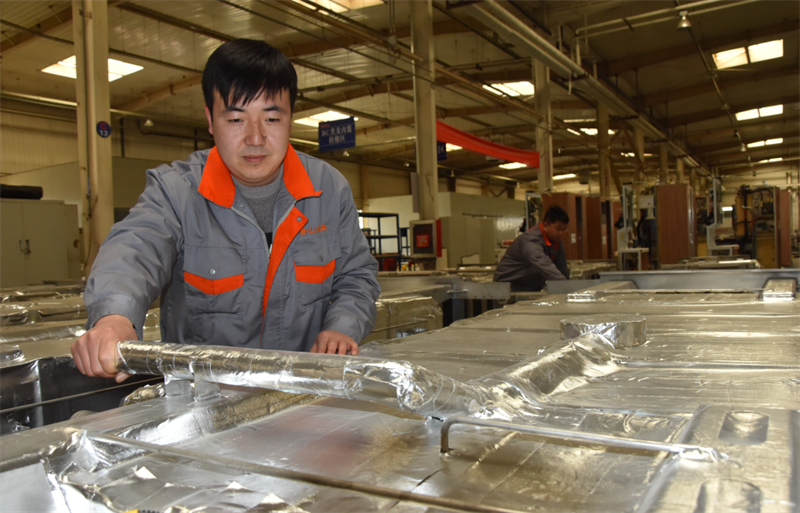 3月9日,唐山威奧軌道交通設(shè)備有限公司車間內(nèi)工人在加緊生產(chǎn)。(受訪單位供圖)