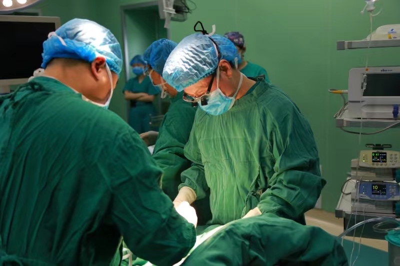 北京兒童醫(yī)院腫瘤外科專家王煥民在保定醫(yī)院為患兒手術。  北京兒童醫(yī)院保定醫(yī)院供圖