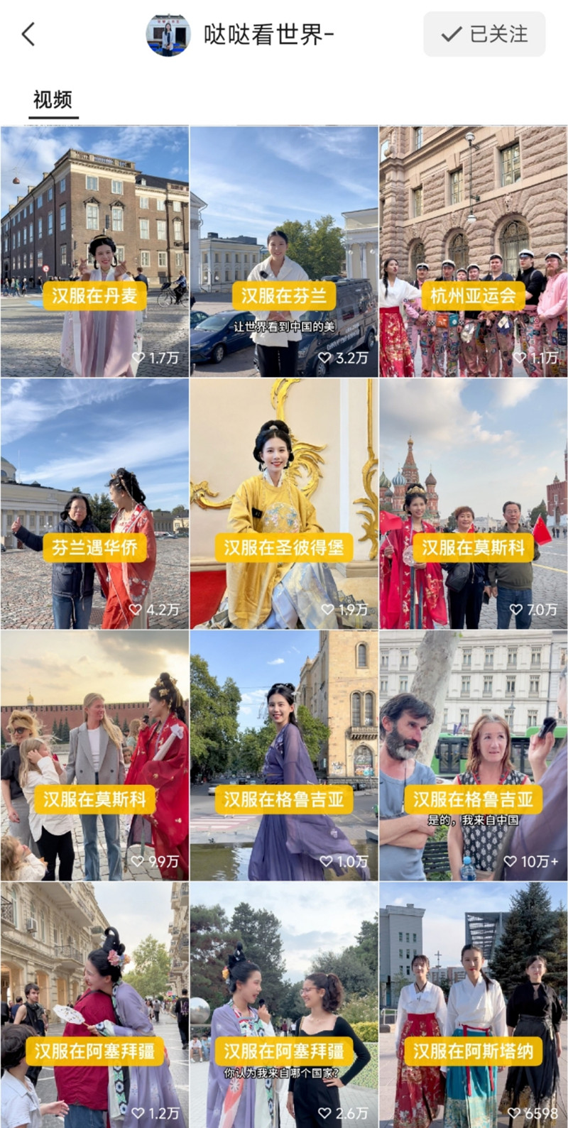 博主“噠噠看世界”,本名叫楊月,出生于1994年,河南新鄉(xiāng)人。2023年8月,她放棄知名奢侈品牌區(qū)域經(jīng)理的高薪工作,獨(dú)自一人開(kāi)著房車(chē)從新疆出發(fā),沿著“絲綢之路”一路西行。每到一個(gè)國(guó)家,她都穿著中華民族傳統(tǒng)服飾走上街頭,與當(dāng)?shù)鼐用窕?dòng)宣傳中國(guó)文化。如今,7個(gè)月過(guò)去了,楊月已到過(guò)20個(gè)國(guó)家,行程4萬(wàn)公里,也讓她全網(wǎng)收獲400萬(wàn)粉絲。