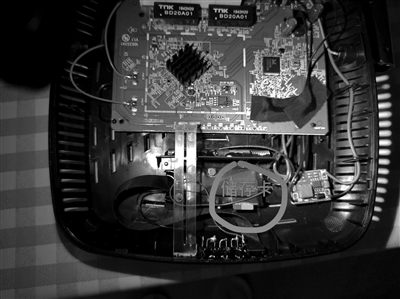 “我第一時(shí)間就發(fā)現(xiàn)路由器存在問題,于是馬上將路由器指示燈朝向地面放置,仔細(xì)地檢查了整個(gè)路由器,發(fā)現(xiàn)路由器的一條排線與一般路由器的線不一樣!痹骑w當(dāng)時(shí)就覺得這個(gè)路由器里有很大概率是安裝了攝像頭。
