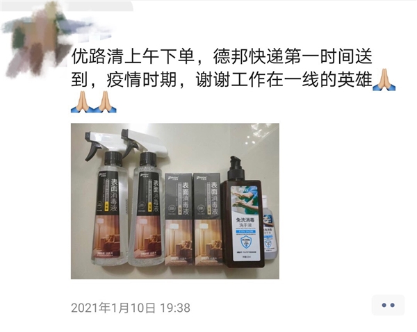 消毒液上午下單晚上送達(dá),被客戶朋友圈點(diǎn)贊