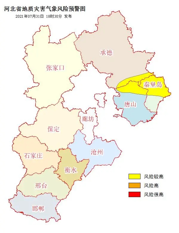 自07月31日20:00至08月01日20:00,河北省唐山市(遷西縣、遵化市、遷安市)、承德市(寬城、興隆縣)、秦皇島市(盧龍縣、山海關(guān)區(qū)、青龍、撫寧區(qū)、海港區(qū))發(fā)生崩塌、滑坡、泥石流等地質(zhì)災(zāi)害風(fēng)險(xiǎn)較高(黃色預(yù)警)。請(qǐng)上述地區(qū)有關(guān)責(zé)任單位和監(jiān)測(cè)人員做好地質(zhì)災(zāi)害監(jiān)測(cè)、巡查等防范工作。