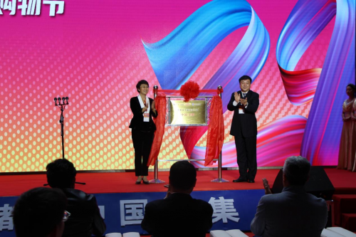 辛集市政協(xié)主席牛軍波、阿里巴巴集團(tuán)副總裁項(xiàng)煌妹為辛集皮革皮草超級(jí)原產(chǎn)地揭牌