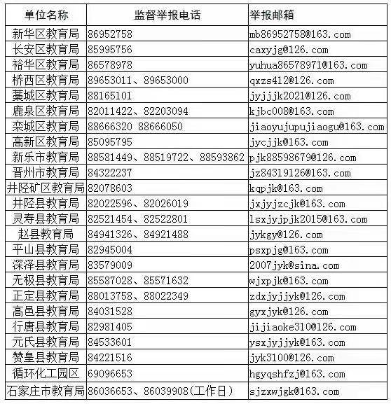 石家莊市教育局公布市、縣兩級校外培訓(xùn)監(jiān)督舉報電話和郵箱