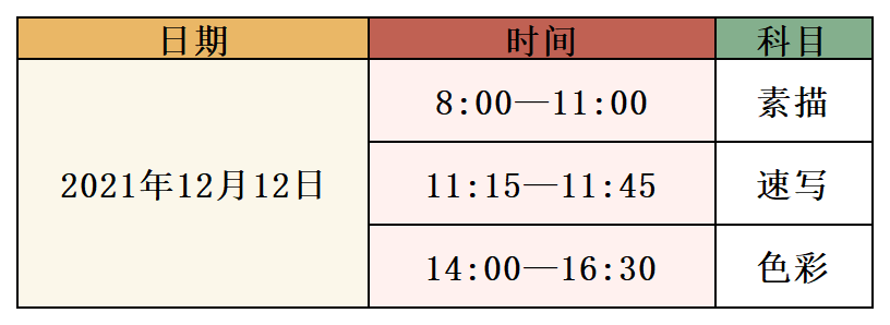 素描、速寫(xiě)按一場(chǎng)次對(duì)待,素描考試未參加的,速寫(xiě)考試不允許入場(chǎng)參加考試,素描收卷和速寫(xiě)發(fā)卷期間,考生不得離開(kāi)座位。