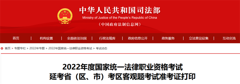2022年度國家統(tǒng)一法律職業(yè)資格考試延考。▍^(qū)、市)考區(qū)客觀題考試將于2023年2月25、26日舉行。2月20日0時起,開通準考證網(wǎng)上打印通道,報名參加客觀題考試人員,請登錄司法部官網(wǎng)(www.moj.gov.cn)打印準考證。