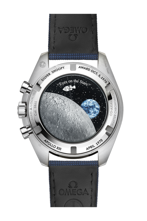 這款手表采用精鋼表殼搭配銀質(zhì)表盤,9點位小表盤飾有“史努比”銀質(zhì)浮雕勛章。手表的背面設計最讓人心動,有兩處動態(tài)設計,地球與9點位的秒針同步,一直保持旋轉(zhuǎn)。而當計時秒針啟動時,史努比駕駛著宇宙飛船,如同阿波羅13號的宇航員們,從月球背面駛出,展開一場驚心動魄、又讓人銘記至今的回家之旅。