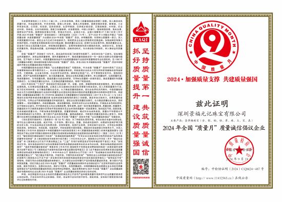 2024年9月,薈萃樓珠寶集團(以下簡稱“薈萃樓珠寶”)應邀參與中國質量檢驗協(xié)會開展的以“加強質量支撐 共建質量強國”為主題的2024年全國“質量月”活動,并獲得“2024年全國‘質量月’質量誠信倡議企業(yè)”的榮譽稱號,再次印證了市場端及廣大消費者對于品牌信譽、產品質量、經(jīng)營服務的充分認可。