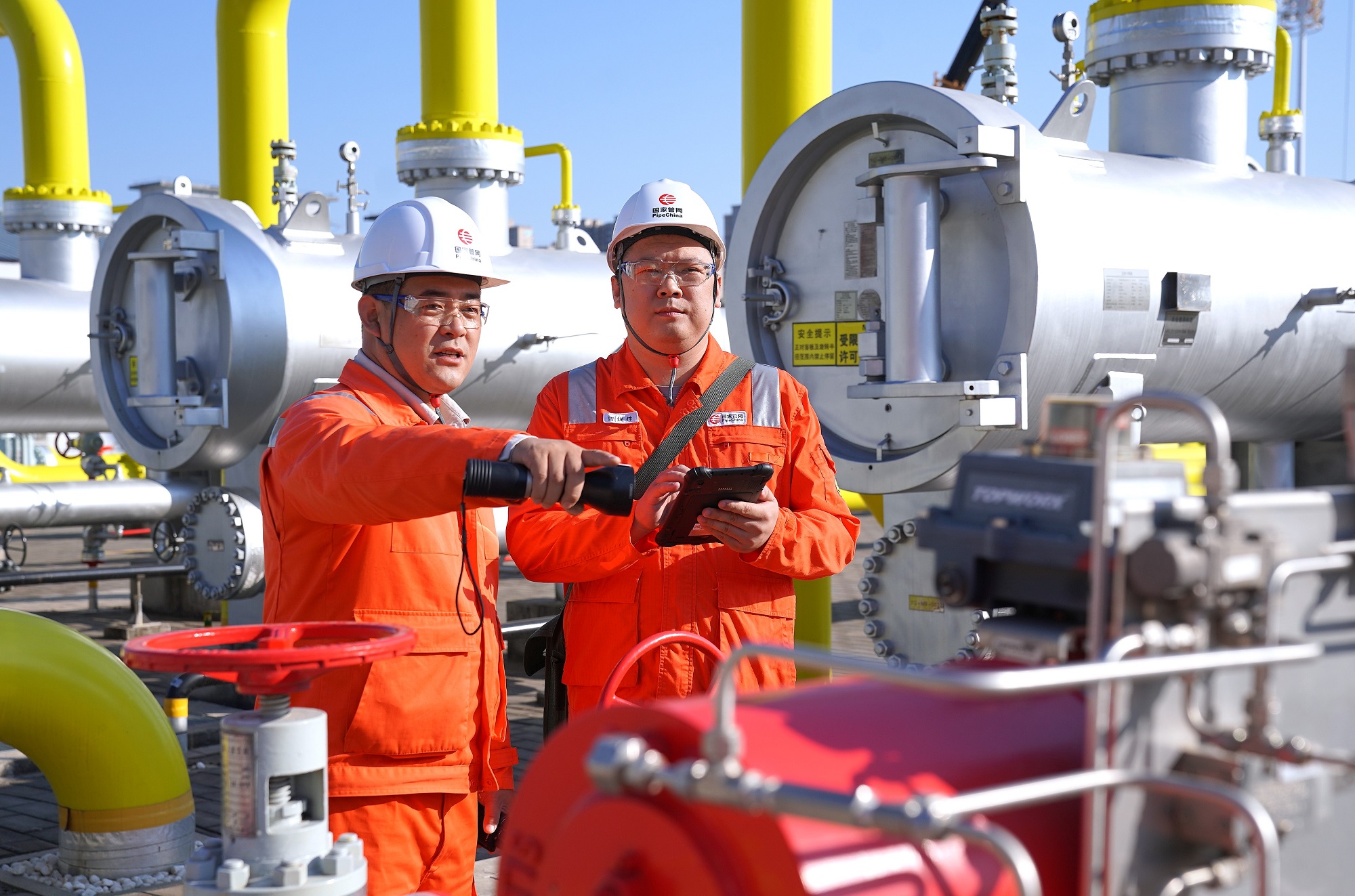 圖為北京管道公司北京分公司員工在西沙屯站巡檢,確保首都的天然氣供應保障。(蔣萬全攝)