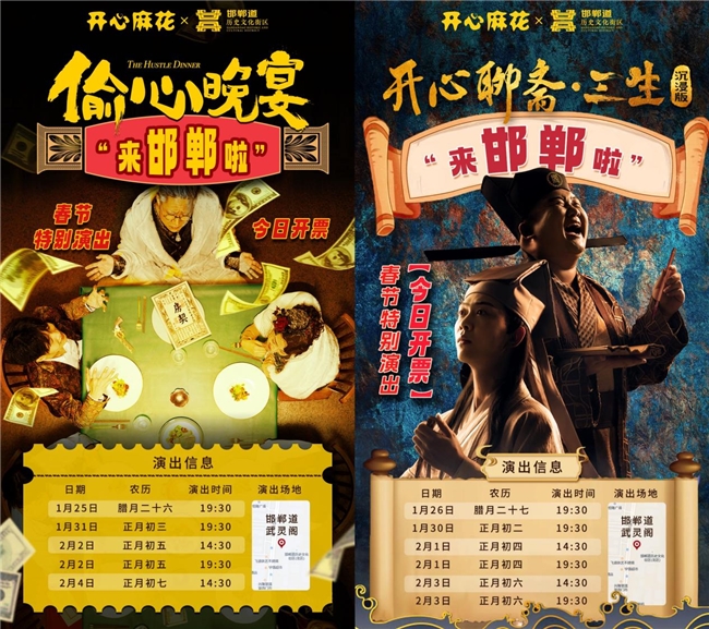 近日,邯鄲文化藝術(shù)領(lǐng)域迎來重磅消息,國內(nèi)喜劇界領(lǐng)軍品牌開心麻花即將首次登陸邯鄲,于 2025 年春節(jié)檔在邯鄲道・武靈閣盛大開演,為當(dāng)?shù)赜^眾精心籌備《開心聊齋・三生》沉浸版與《偷心晚宴》兩場精彩絕倫的喜劇演出,開票籌備工作現(xiàn)已進(jìn)入尾聲,于1月7號晚上正式發(fā)售,門票限時第二張半價。