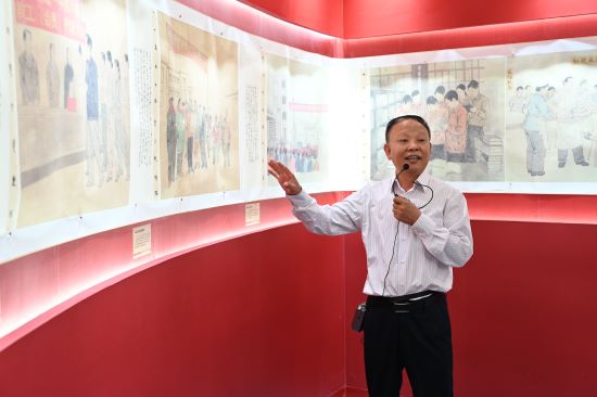 孟增會老師以精心創(chuàng)作的石家莊工運史百米長卷為載體,通過77幅生動畫作和66則深刻題跋,系統(tǒng)梳理了從新民主主義革命時期到新時代的石家莊工運發(fā)展史。在講解中,孟老師重點解讀了正太鐵路工人大罷工等重大歷史事件,生動展現(xiàn)了石家莊工人階級在中國共產(chǎn)黨領(lǐng)導(dǎo)下英勇斗爭的光輝事跡。