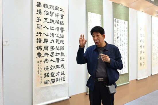 魏兵然老師則通過"工運華章·翰墨光影"職工書畫攝影展,從書法藝術(shù)傳承發(fā)展的角度進行深入講解。他以魏碑、隸書等經(jīng)典書法藝術(shù)為例,系統(tǒng)闡釋了中國書法藝術(shù)的演變歷程,強調(diào)書法作為中華文化瑰寶的重要價值。魏老師特別指出,展覽中的工運主題作品既傳承了傳統(tǒng)書法的精髓,又融入了新時代的審美理念,實現(xiàn)了傳統(tǒng)文化的創(chuàng)造性轉(zhuǎn)化和創(chuàng)新性發(fā)展。