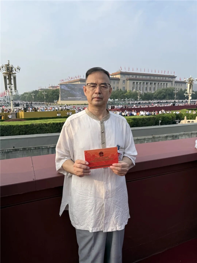 閱兵觀禮臺(tái)上,董瑞深感自豪與榮耀。他表示:"受邀觀禮既是對(duì)個(gè)人醫(yī)學(xué)探索的認(rèn)可,更是新時(shí)代對(duì)中醫(yī)藥事業(yè)的鼓舞。從守護(hù)個(gè)體生命到服務(wù)國(guó)家戰(zhàn)略,這是當(dāng)代中醫(yī)人肩負(fù)的雙重使命。"。作為民盟中央常委,曾擔(dān)任全國(guó)、北京市、懷柔區(qū)三級(jí)政協(xié)委員,董瑞始終以"雙崗履職"踐行使命:在參政議政領(lǐng)域,提交《關(guān)于多渠道培養(yǎng)人才、完善基層公共衛(wèi)生服務(wù)隊(duì)伍的提案》等百余件建言,持續(xù)為推動(dòng)我國(guó)醫(yī)療衛(wèi)生事業(yè)發(fā)展建言獻(xiàn)策;在民生服務(wù)一線,他作為民盟中央社會(huì)服務(wù)工作委員會(huì)副主任,承辦"健康呼吸萬(wàn)里行"十省市大型公益行動(dòng),累計(jì)救治塵肺病患者逾千名,并在貴州畢節(jié)、黔西南等地推動(dòng)建設(shè)"民盟名醫(yī)工作室",通過(guò)"醫(yī)療幫扶+人才培養(yǎng)"模式賦能鄉(xiāng)村振興。展望未來(lái),董瑞強(qiáng)調(diào)團(tuán)隊(duì)將賡續(xù)"大醫(yī)精誠(chéng)"精神,持續(xù)深化"肺結(jié)節(jié)全周期管理方案"研究,將參政議政成果轉(zhuǎn)化為一線救治實(shí)踐,為完善醫(yī)療衛(wèi)生體系、助力健康中國(guó)建設(shè)作出自己的貢獻(xiàn)。