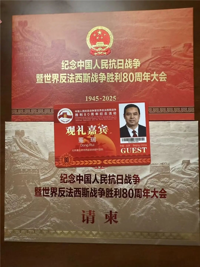 2025年9月3日,在莊嚴(yán)的天安門廣場(chǎng),中國(guó)人民抗日戰(zhàn)爭(zhēng)暨世界反法西斯戰(zhàn)爭(zhēng)勝利80周年紀(jì)念日閱兵儀式隆重舉行。十三屆全國(guó)政協(xié)委員、民盟中常委、首都名中醫(yī)、享受國(guó)務(wù)院特殊津貼專家、中醫(yī)主任醫(yī)師、博士生導(dǎo)師、世界中醫(yī)藥學(xué)會(huì)聯(lián)合會(huì)中醫(yī)膏方專業(yè)委員會(huì)創(chuàng)始會(huì)長(zhǎng)、經(jīng)典名方現(xiàn)代中藥創(chuàng)制全國(guó)重點(diǎn)實(shí)驗(yàn)室“肺結(jié)節(jié)與肺癌”防治研究中心主任、北京康益德中西醫(yī)結(jié)合肺科醫(yī)院創(chuàng)始人董瑞成為主觀禮臺(tái)閱兵嘉賓。