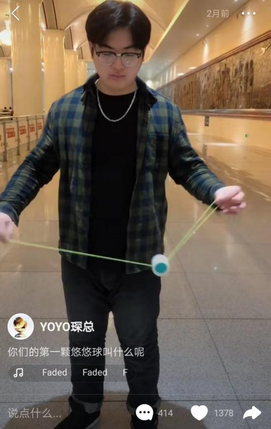 在現(xiàn)實(shí)中獨(dú)在異鄉(xiāng)不茍言笑的辦公室文員,在快手上變成了粉絲們口中酷炫的“琛總”,劉子琛順勢也把自己的快手名改成了“YoYo琛總”。“特別感謝快手上每一個(gè)支持我的人,在快手上和大家互動(dòng),讓我感覺生活充滿樂趣,童年里一幫朋友切磋悠悠球的場景又回來了。”