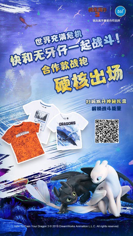 作為出品方環(huán)球影業(yè)的戰(zhàn)略合作伙伴,本次《馴龍高手3》全國公映的童裝合作品牌361°童裝,也正在傾力為小影迷們打造一場別開生面的“尋龍之旅”。