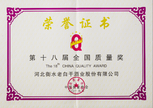 一、斬獲全國質量獎,衡水老白干以高質量引領行業(yè)發(fā)展