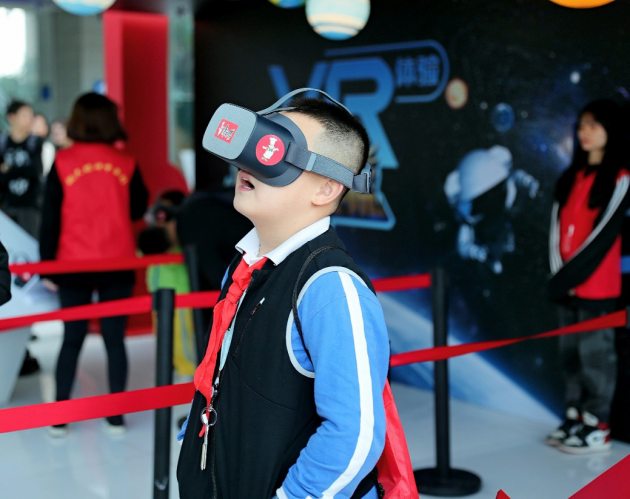 ▲VR科普教室以獨(dú)特的沉浸式互動體驗(yàn),帶小朋友遨游太空