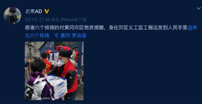 運(yùn)輸首日,六個(gè)核桃運(yùn)送團(tuán)隊(duì)檢測(cè)好體溫,戴上口罩,穿上防護(hù)服,一路出城,開(kāi)著滿載支援物資的貨車,火速馳援前線。然而湖北此時(shí)人力物力有限,六個(gè)核桃的運(yùn)送隊(duì)伍也遇到了不少困難。然而大家積極聯(lián)絡(luò)溝通,物資相繼順利送抵。來(lái)自黃岡市羅田縣網(wǎng)友@老韓AD表示:“感謝六個(gè)核桃對(duì)黃岡災(zāi)區(qū)物資捐贈(zèng),我身在疫區(qū)義工監(jiān)工,順利把六個(gè)核桃搬運(yùn)到人民的手里。”