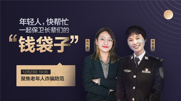生活中有形形色色的金融詐騙,一直以來(lái),老年群體都是騙子下手的重要目標(biāo),怎樣才能保護(hù)好他們的“錢袋子”?12月23日19:30,蘇寧金融聯(lián)合南京公安反詐中心開(kāi)展直播,南京市公安局網(wǎng)絡(luò)安全保衛(wèi)支隊(duì)管理大隊(duì)教導(dǎo)員宋璐瑩、蘇寧金融風(fēng)險(xiǎn)管理中心風(fēng)險(xiǎn)處置部專家高竹君,將在線為老年人防范金融詐騙支招。屆時(shí)關(guān)注蘇寧金融官方微博,或登錄蘇寧金融APP“財(cái)顧”頻道,即可觀看。