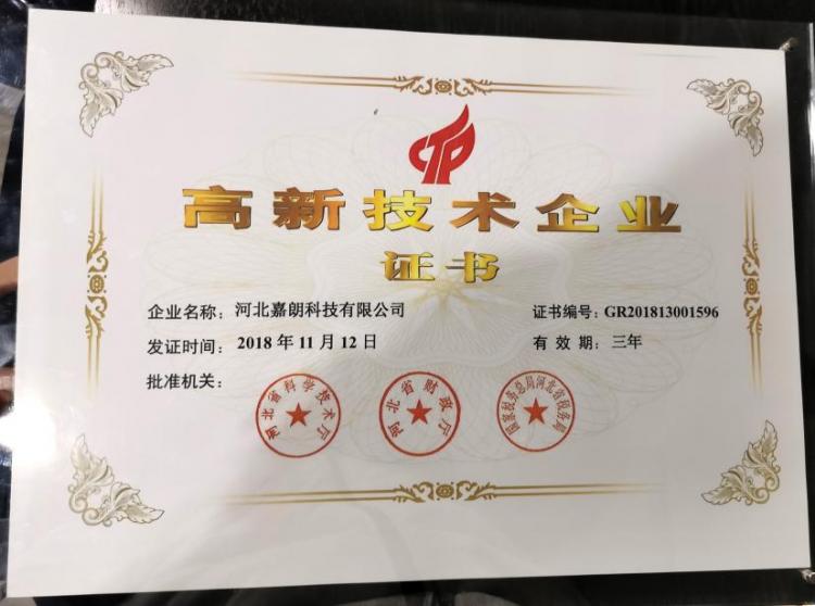 2018年11月嘉朗科技認(rèn)定為國家級高新技術(shù)企業(yè)