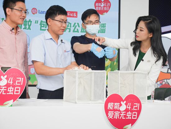 而在近4小時的"421愛家無蟲日"直播活動中,欖菊特意準(zhǔn)備了蚊蟲叮咬實(shí)驗(yàn),看著滿滿一籠飛舞的蚊子,我們的蚊蟲專家勇于獻(xiàn)身,用手背展示被蚊子包叮咬的情況,再"現(xiàn)身說法"為百萬網(wǎng)友詳細(xì)解析蚊子、蚊子包的研究以及驅(qū)蚊知識。