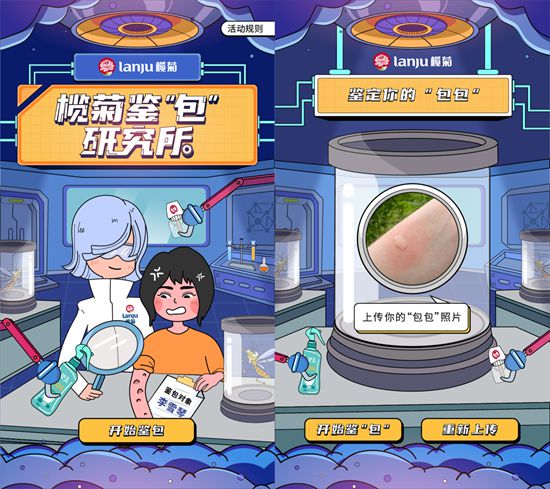五一期間,欖菊還上線了一款"智能鑒包"的互動H5.讓網(wǎng)友們可以通過H5上傳"蚊子包"照片,獲取相關(guān)蚊蟲的專業(yè)解讀和驅(qū)護(hù)建議,既滿足了數(shù)百萬網(wǎng)友對蚊蟲相關(guān)知識的好奇心,也讓大家在參與過程中自然而然地建立了完備的蚊蟲防制知識體系。