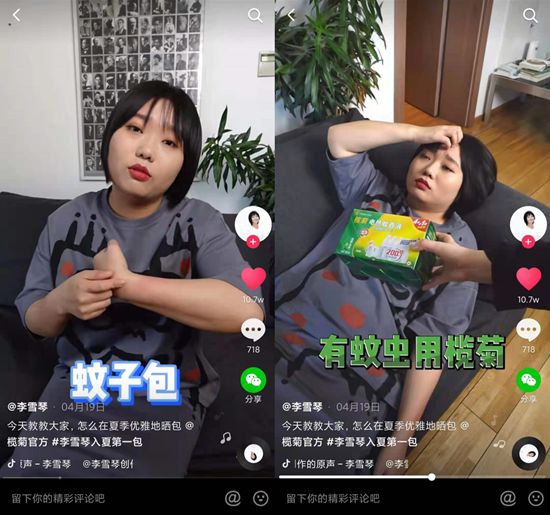 首先是在抖音上,脫口秀達(dá)人李雪琴率先發(fā)起了"蚊包"困擾求助,一時掀起了網(wǎng)絡(luò)熱議潮流,說出了許多人的夏日困擾,在網(wǎng)友感同身受一起吐槽"蚊包"煩惱的同時,推出了欖菊"2021中國蚊包趨勢公益直播",實(shí)實(shí)在在的用一場科普直播以及后續(xù)的公益行動解決了網(wǎng)友槽點(diǎn)與痛點(diǎn)。