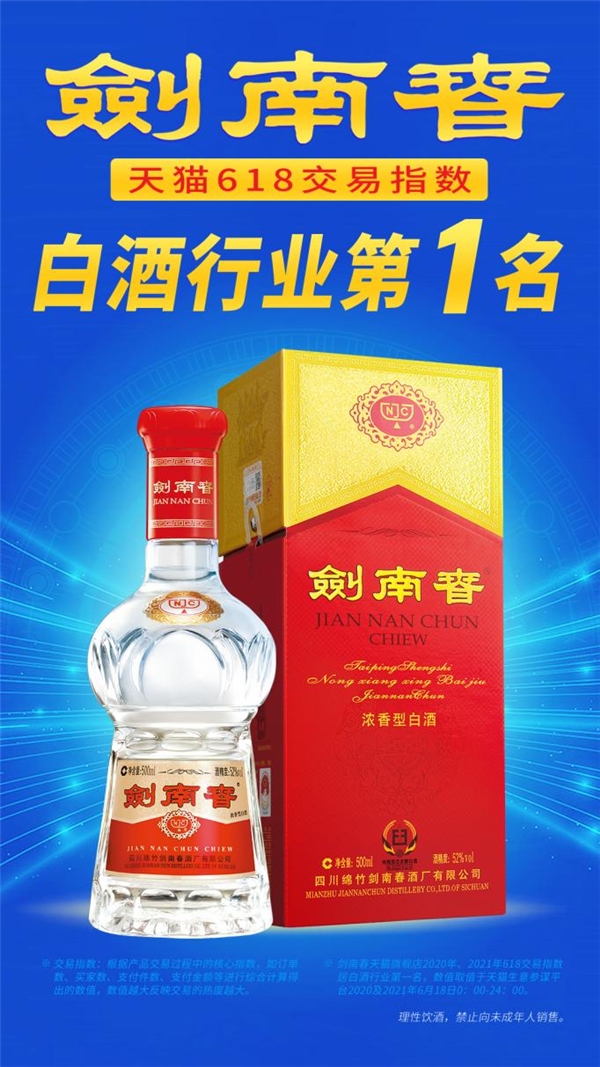 快訊!劍南春奪“618”白酒品牌旗艦店交易指數(shù)第一名