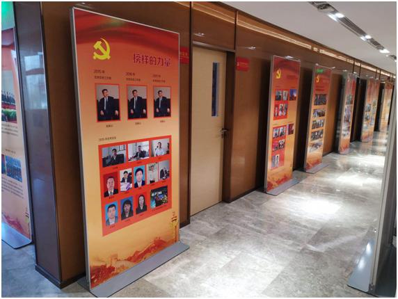 人們一走進(jìn)天山集團(tuán)辦公現(xiàn)場(chǎng),就會(huì)感受到天山黨建工作的濃厚氛圍。在總部辦公樓門口,除了懸掛著中共河北天山實(shí)業(yè)集團(tuán)有限公司委員會(huì)和天山集團(tuán)的標(biāo)牌外,還矗立起一塊集團(tuán)黨群活動(dòng)服務(wù)中心的鮮明標(biāo)識(shí)。辦公樓內(nèi),約800平米的活動(dòng)中心,設(shè)施完善功能齊全。黨員培訓(xùn)電教室、入黨積極分子學(xué)習(xí)室、黨建指導(dǎo)員工作室……每走進(jìn)一個(gè)屋內(nèi),都有標(biāo)牌對(duì)房間的功能職責(zé)的詳細(xì)說明。更讓人感到震撼的是走廊內(nèi)布滿的展景牌。近60塊展牌分別呈現(xiàn)了天山集團(tuán)黨委落實(shí)踐行黨的十九大精神的系列情景及多年來黨員活動(dòng)情況、所盡社會(huì)責(zé)任及義務(wù)情況、各黨支部情況、優(yōu)秀黨員介紹、黨的歷史及黨建制度介紹等五大板塊內(nèi)容。