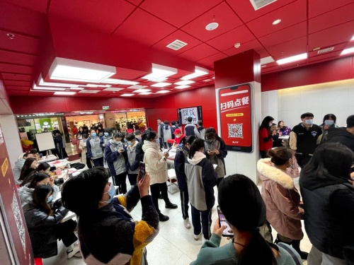 來到西少爺兩家新店現(xiàn)場(chǎng),發(fā)現(xiàn)二者都延續(xù)了其一貫簡(jiǎn)約而不簡(jiǎn)單的現(xiàn)代化風(fēng)格,經(jīng)典的紅白配色十分搶眼,彰顯了品牌的年輕化。而另一個(gè)吸引眼球的則是熱勢(shì)難擋的火爆人氣,據(jù)海悅天地店店員介紹,早上商場(chǎng)剛開門不久,店門口就開始排起隊(duì)了,感受到了石家莊人民的熱情。