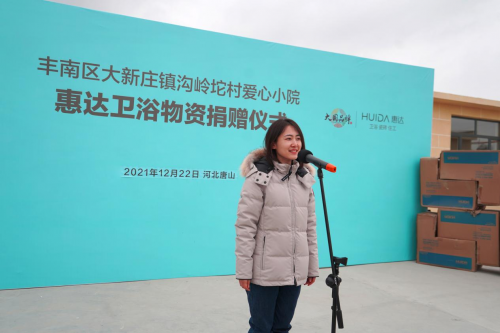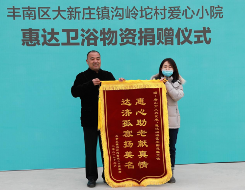 捐贈儀式上,大新莊鎮(zhèn)人大主席懷曉偉發(fā)表了致辭。唐山市人大代表、惠達(dá)常務(wù)副總裁王佳向愛心小院捐贈衛(wèi)生潔具等慈善物資,并講話。她說:“看到家鄉(xiāng)父老的生活有所改善,我感到特別自豪。感謝郭俊章同志長期以來對公益事業(yè)的支持,作為從唐山豐南走出的民族衛(wèi)浴代表,本次愛心小院捐贈活動于惠達(dá)而言,既是惠達(dá)一直堅持的公益之舉,更是對家鄉(xiāng)父老的感恩回報。希望我們提供的衛(wèi)浴潔具產(chǎn)品,能夠為老人們營造一個更舒適的生活環(huán)境,為解決溝嶺坨村的養(yǎng)老居住問題略盡薄力。”